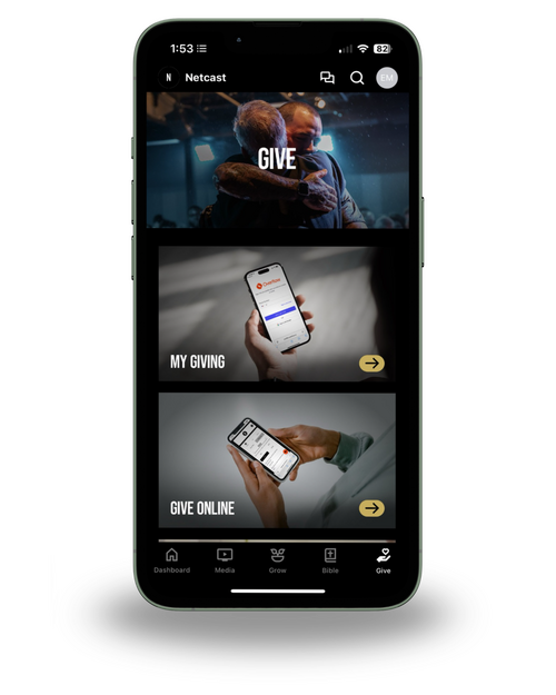 with the netcast app, giving is easier than ever. manage your profile, use apple pay, and much more - right in the app!